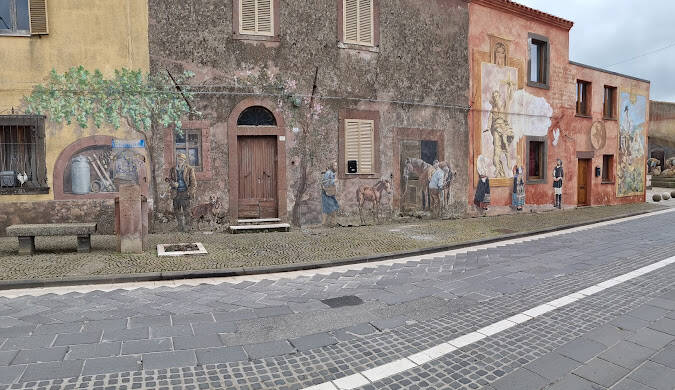Het kleine maar karakteristieke dorpje Tinnura ligt op 5 minuten van onze bed & wine en is een waar openluchtmuseum. De beschilderde muren vertellen op prachtige en kleurrijke wijze over het leven, de tradities en de schoonheid van Sardinië.